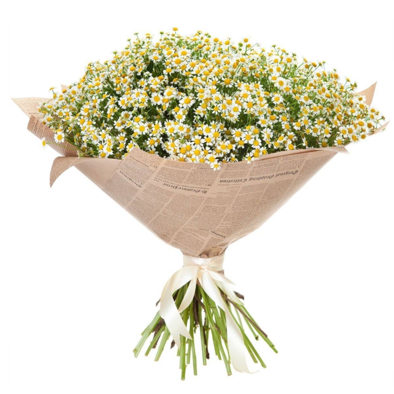 Букет состоит из 35 веток танацетума, крафт, атласная лента.